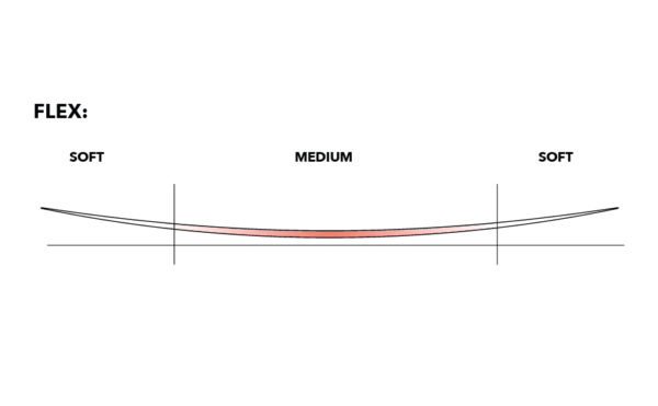 This layout of fibers transfers power directly to the edges and creates perfect flex. As a result the board features aggressive filling, quick response and harmonious flexibility.